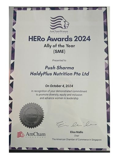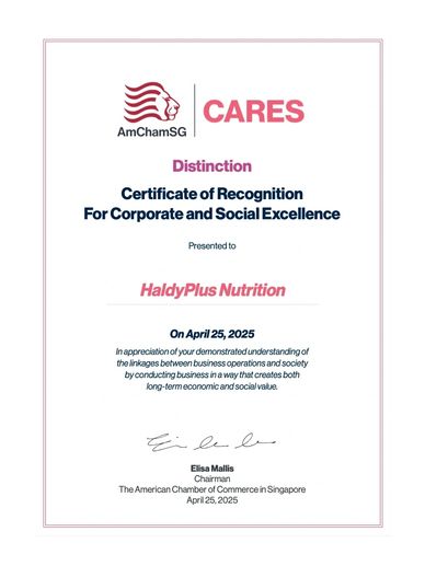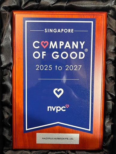 HaldyPlus Nutrition Pte Ltd. was recognised as a Singapore Company Of Good, brought to you by NVPC, in support of Forward SG and together because SG Cares.